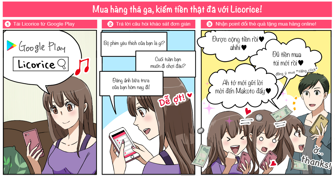 Chỉ cần bỏ ra 5 phút nghỉ trưa hay 5 phút trước khi đi ngủ để trả lời khảo sát, Bạn có thể nhận ngay từ 10¢〜100¢.